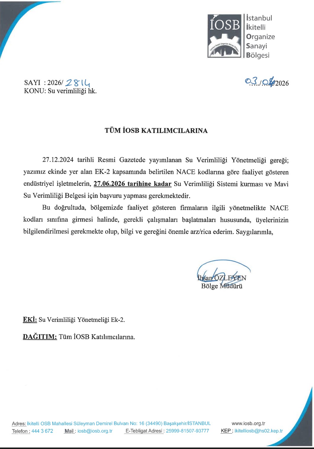 TÜM İOSB KATILIMCILARINA